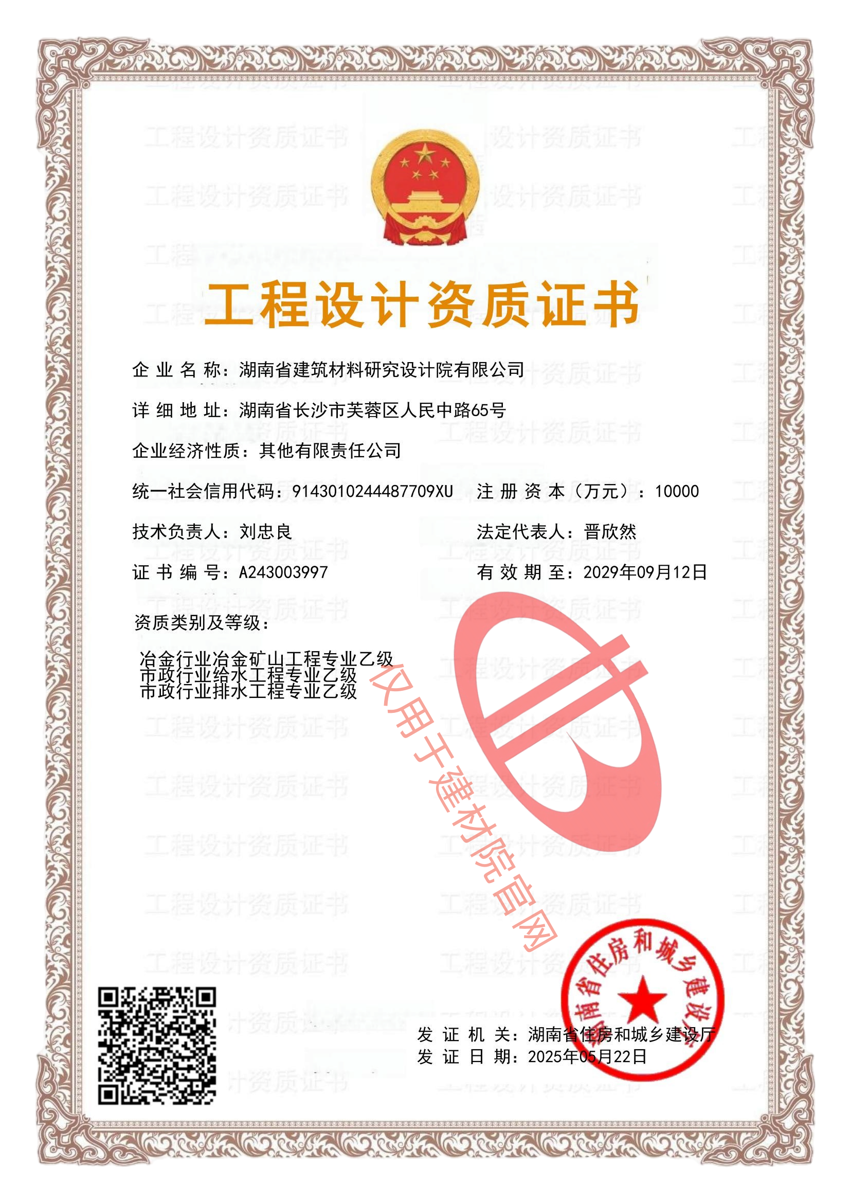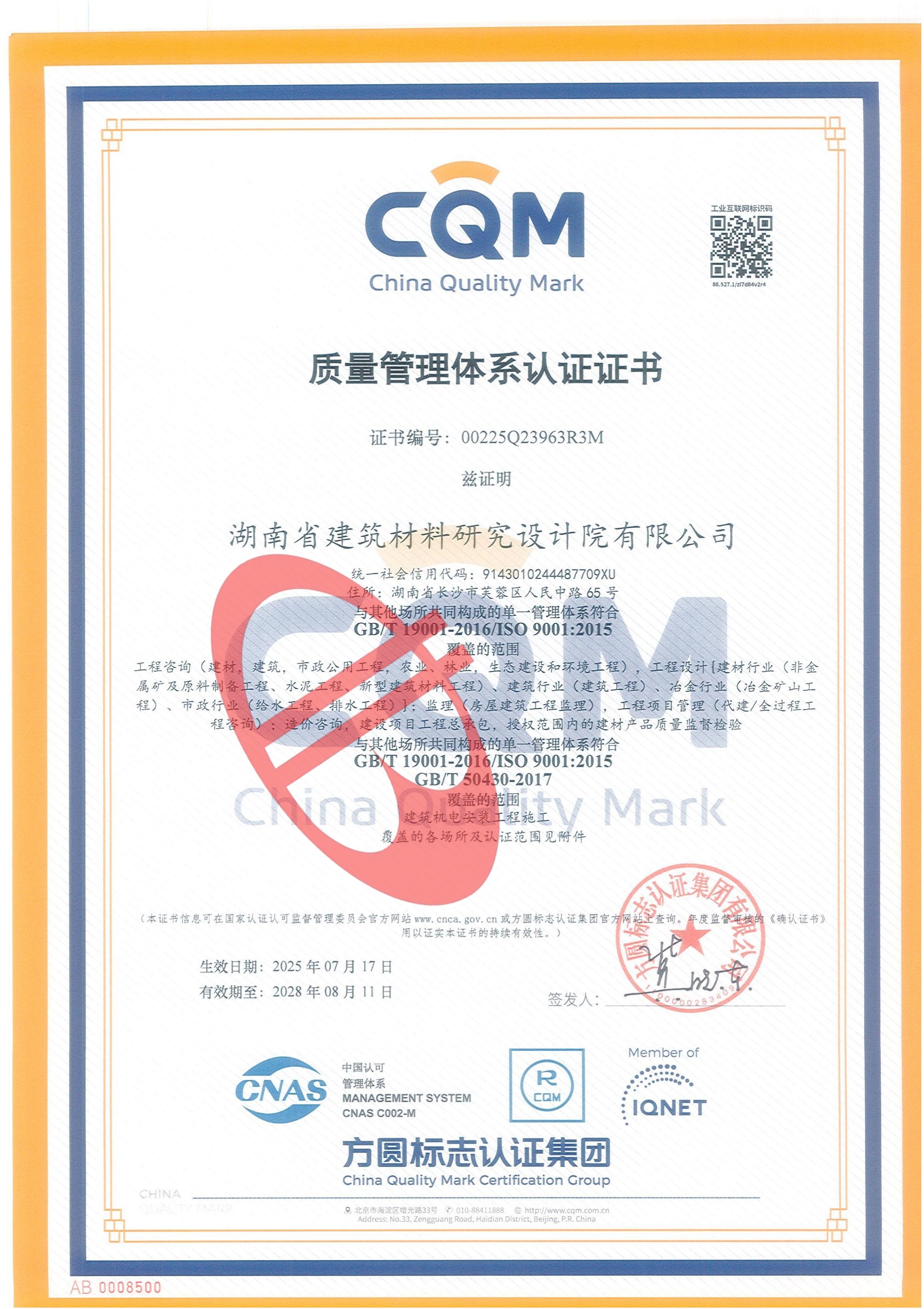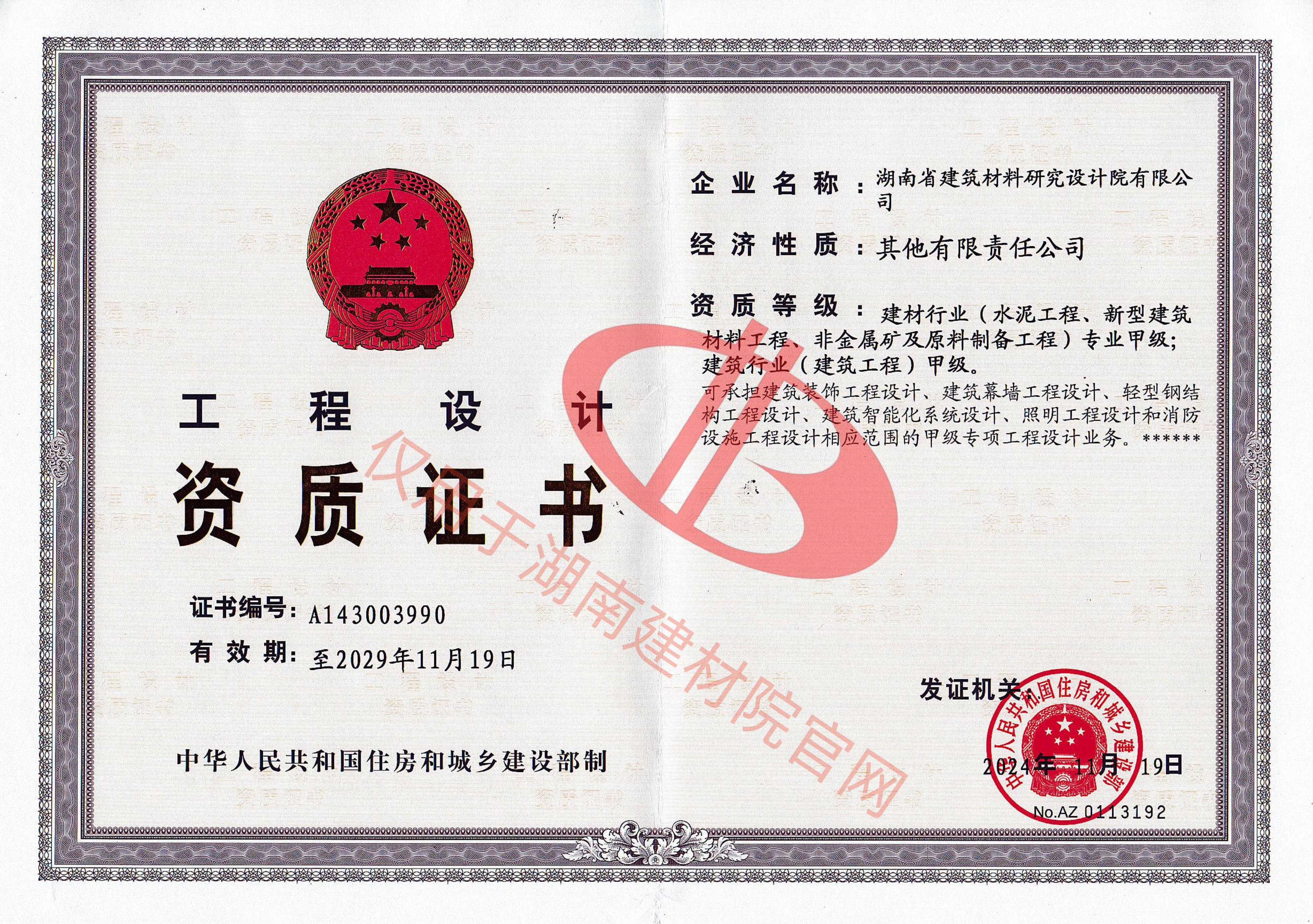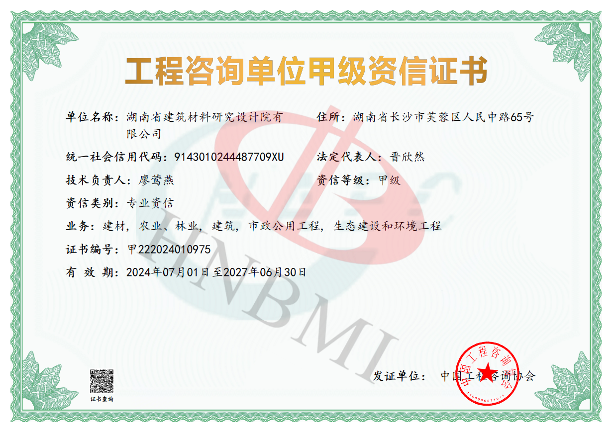 公司資質(zhì)_湖南省建筑材料研究設(shè)計(jì)院有限公司