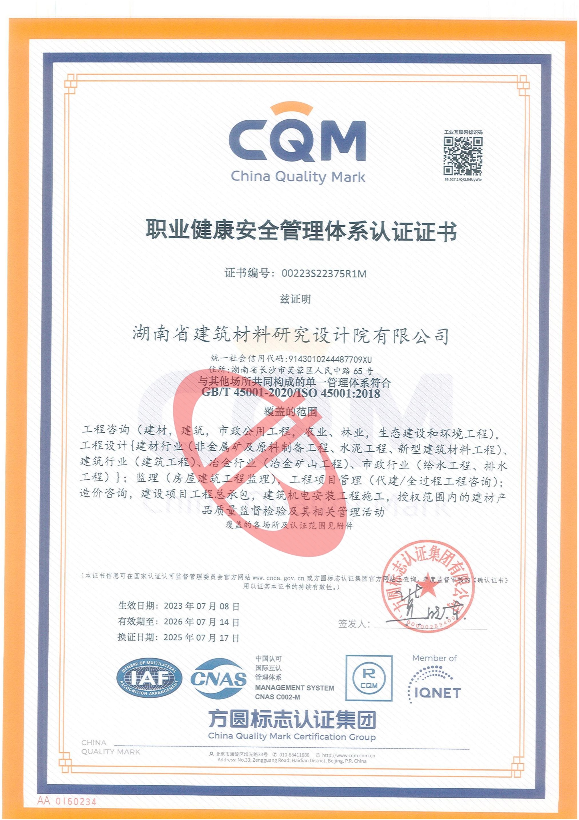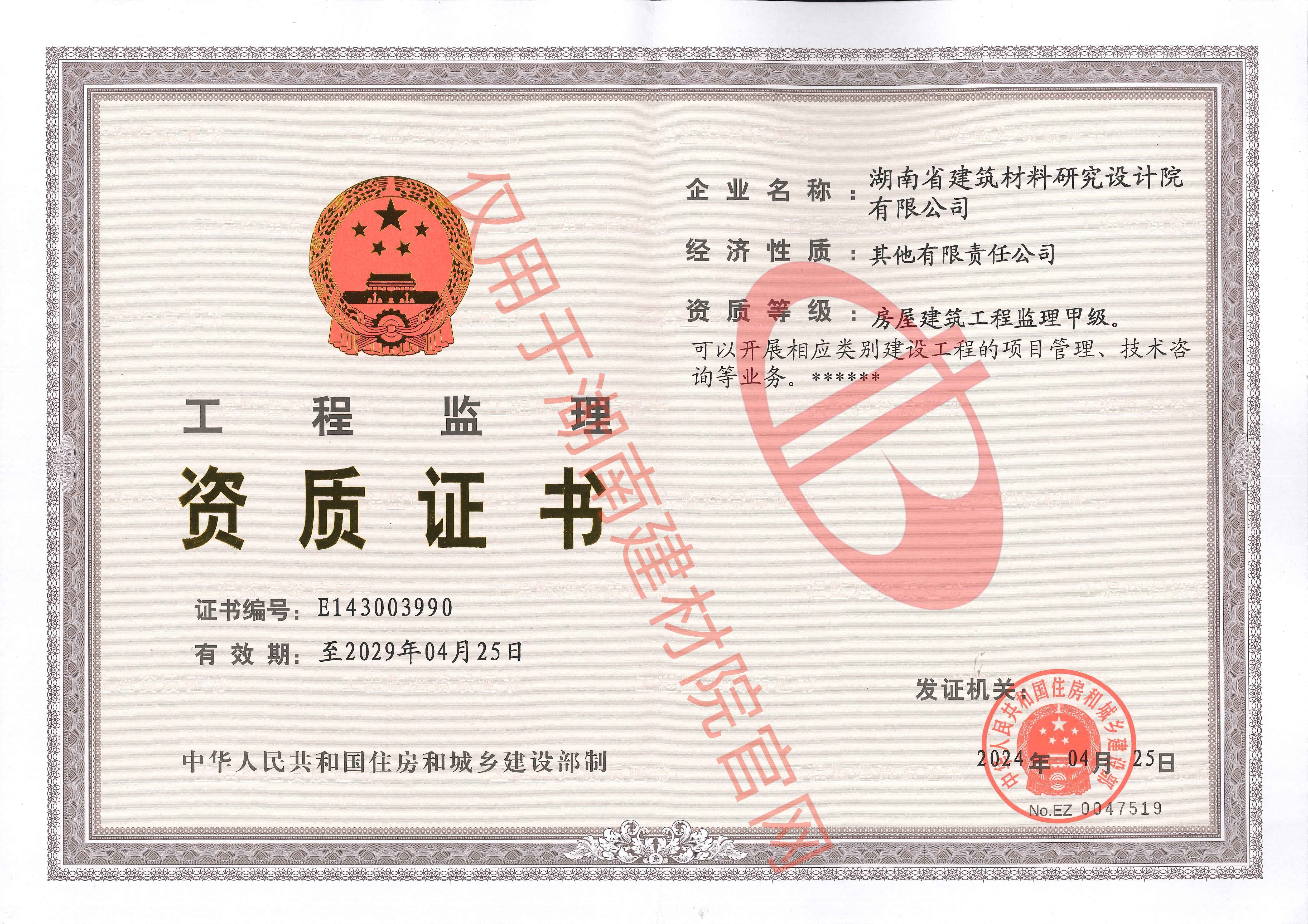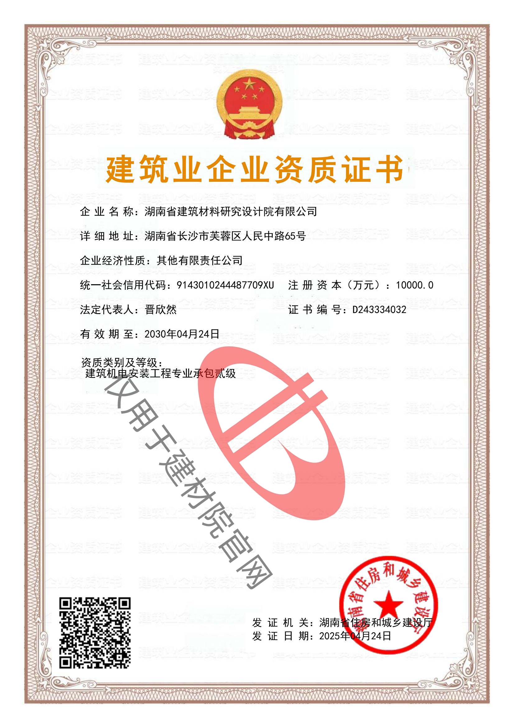 公司資質(zhì)_湖南省建筑材料研究設(shè)計(jì)院有限公司