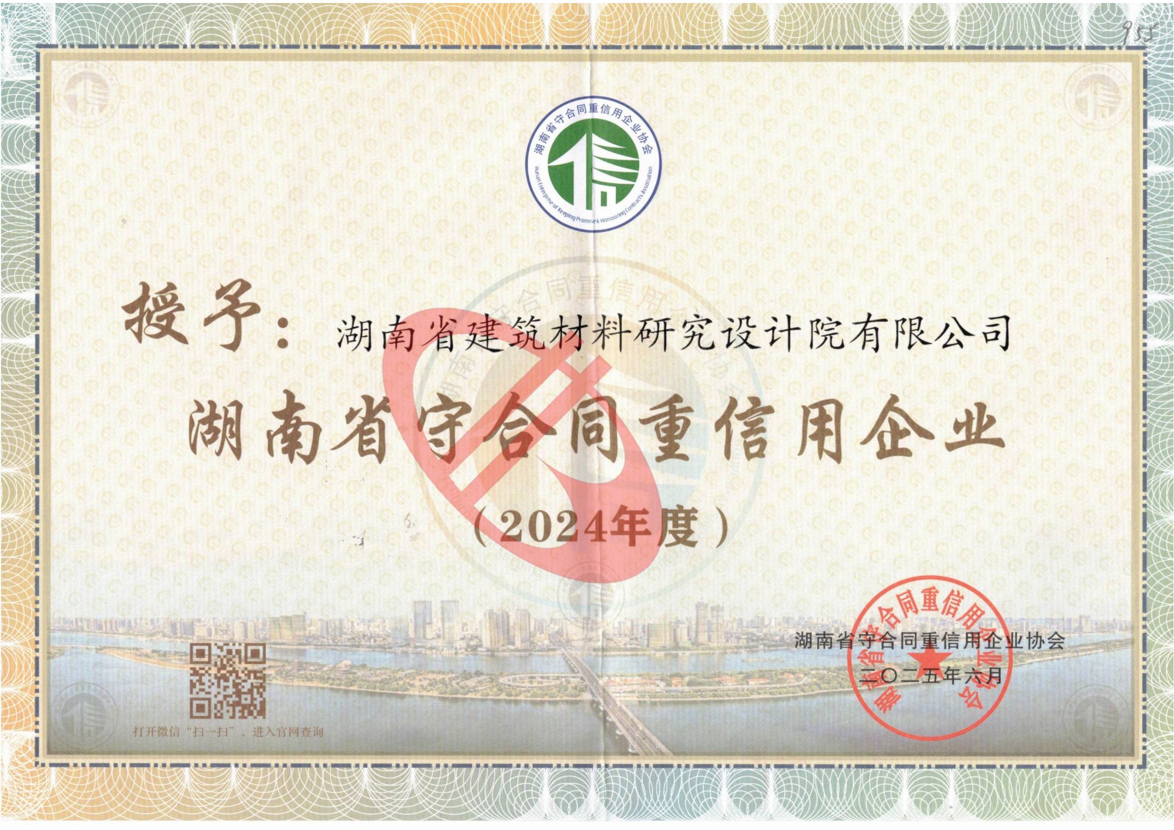 湖南省守合同重信用企業(yè)